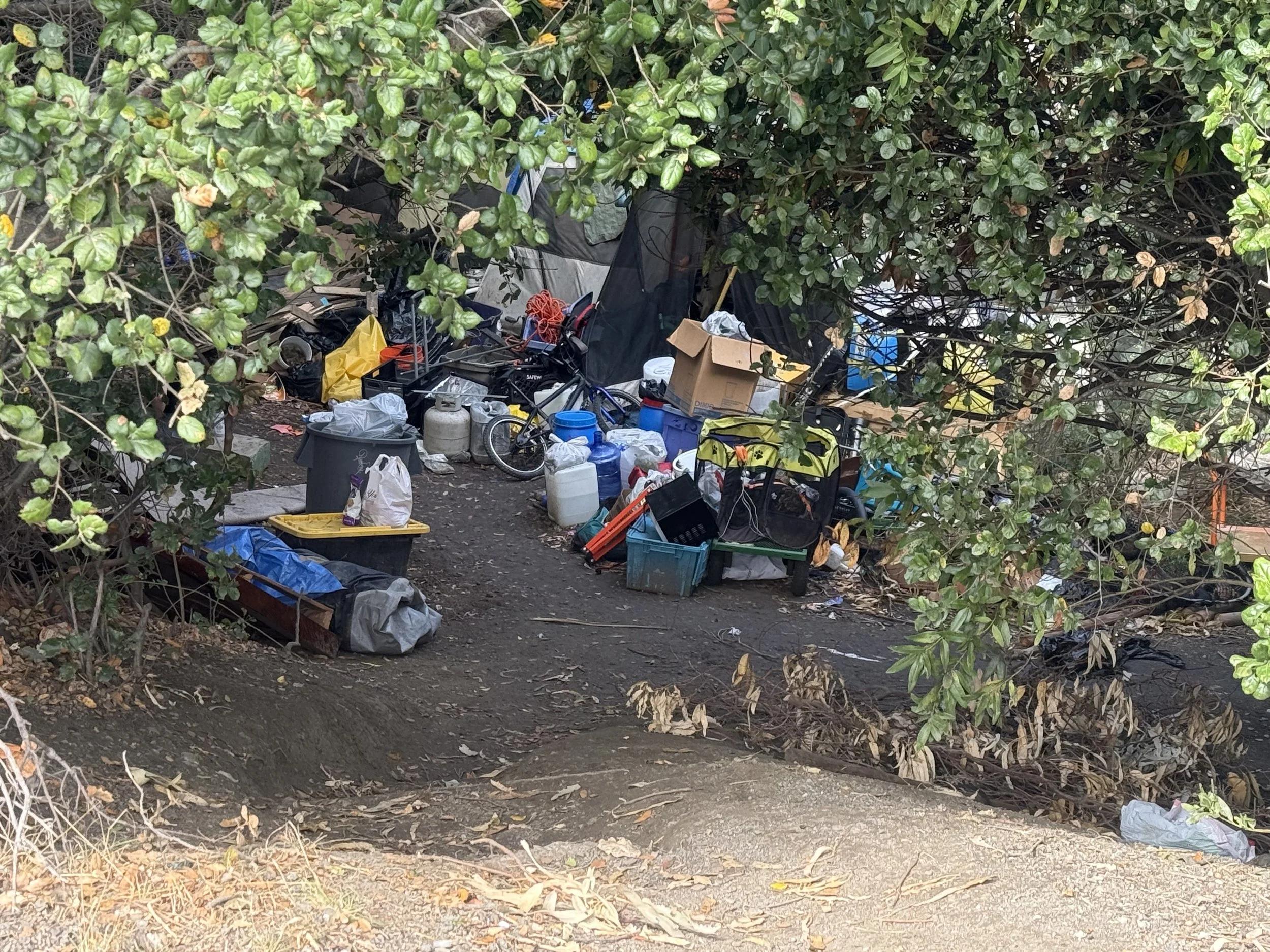 A closer look reveals the signs of habitation. When our volunteers called down to the creek, people began stirring around, and walking up the path to our van.
