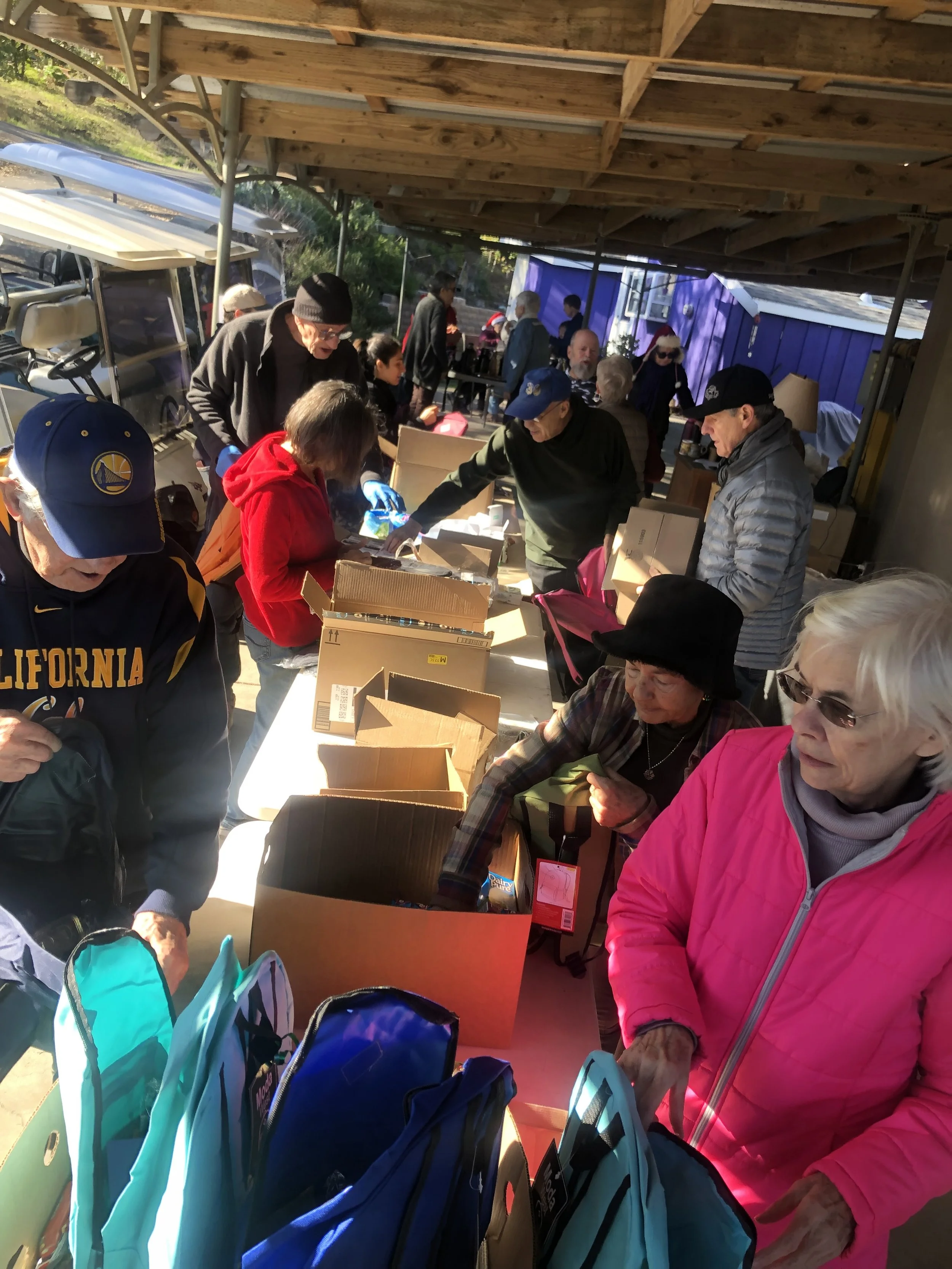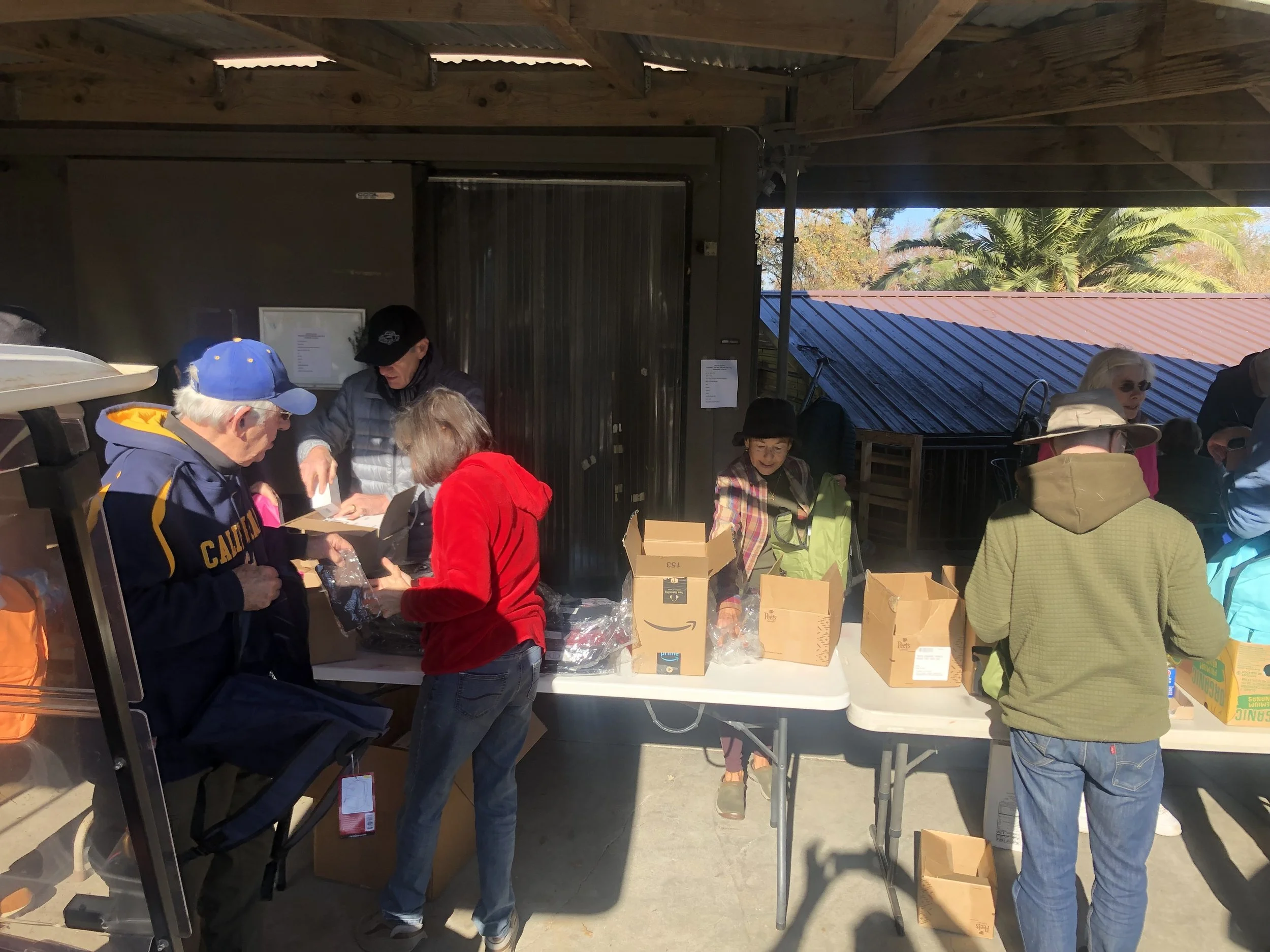 Backpacks full of hygiene items, rain gear, warm socks and underwear and much much more