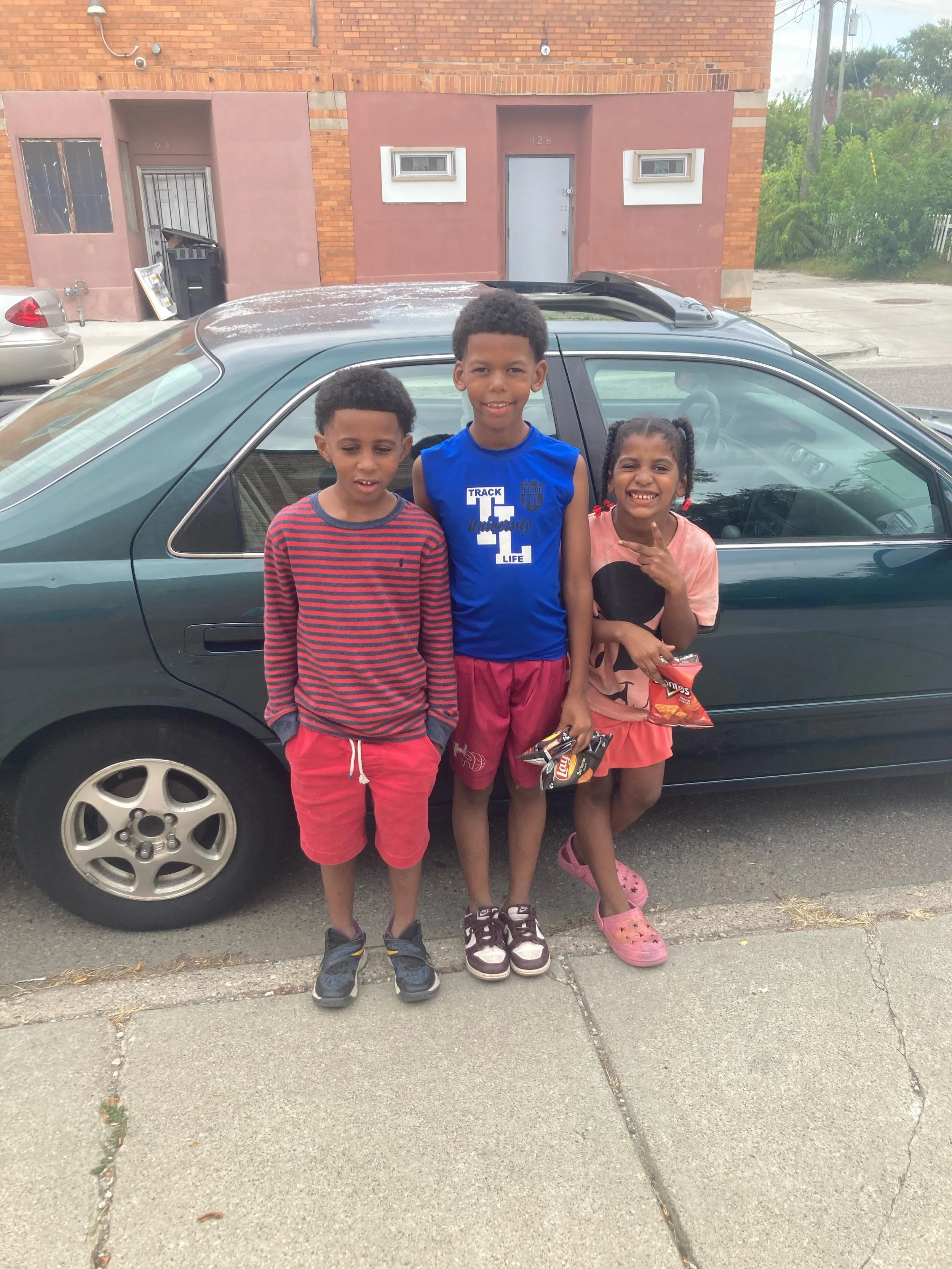 3 of Shajuan’s 5 children are in the photo. Her youngest daughter, show on the right, was overheard saying, “now Mommy can drive us anywhere we want to go!”
